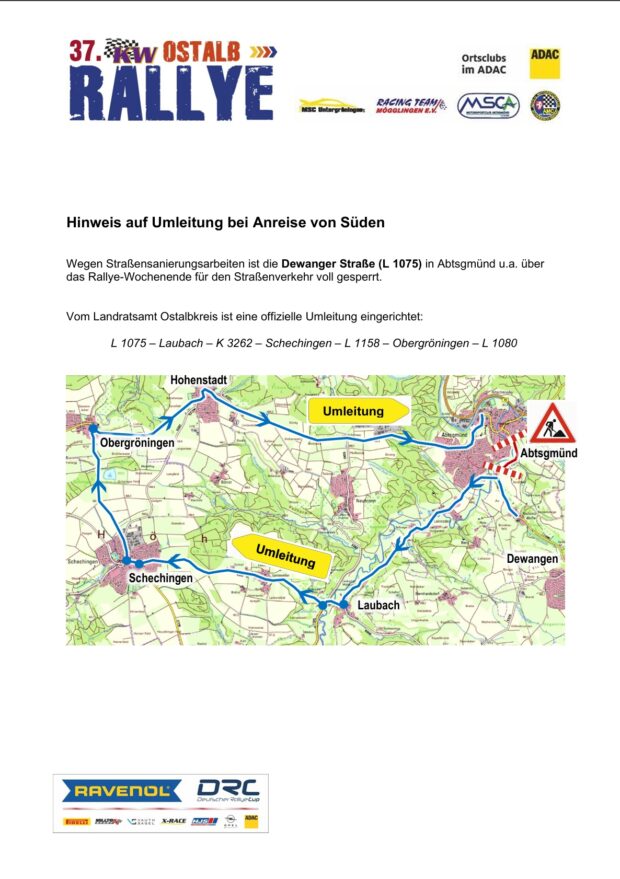 Ortsplan & Übersicht Nachfolgend findet Ihr die Lagepläne. Ortsplan Abtsgmünd Übersicht Rallyezentrum Detailplan Kochertal-Metropole Abtsgmünd Detailplan Hängerparkplatz + Reifenmontagezone Umleitung Dewanger Straße